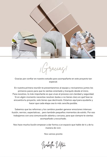 Documentos pensados para ordenar tu proceso, reforzar tu valor profesional y ofrecer a tus clientes una experiencia clara, cuidada y coherente, sin improvisaciones ni explicaciones repetidas.