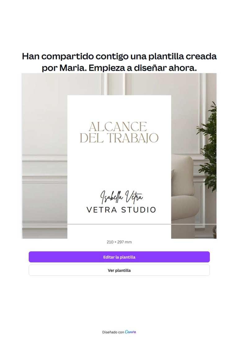 Recibirás un PDF con un enlace directo a Canva. Al abrirlo solo tienes que pulsar “Usar plantilla” y Canva creará tu copia automática. Es muy fácil incluso si eres principiante.