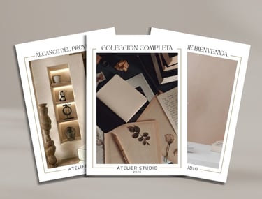 Esta colección reúne todas las plantillas editoriales de Atelier Templates, diseñadas para acompañarte desde el primer contacto con el cliente hasta la entrega final del proyecto.