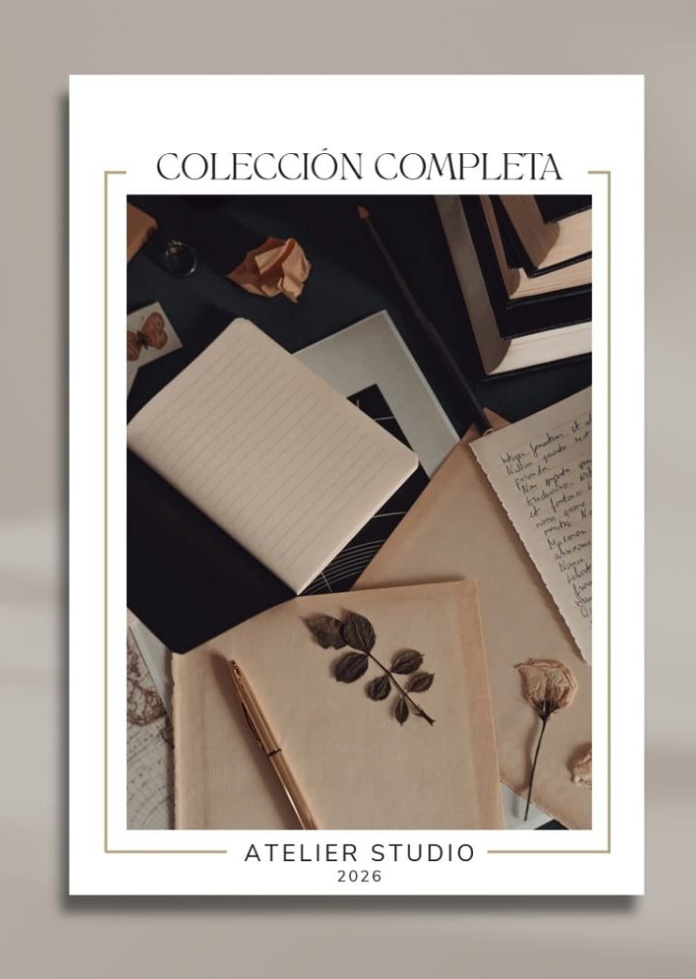 La Colección Completa de Atelier Templates reúne todas las plantillas editoriales esenciales para acompañarte desde el primer contacto con el cliente hasta la entrega final del proyecto.