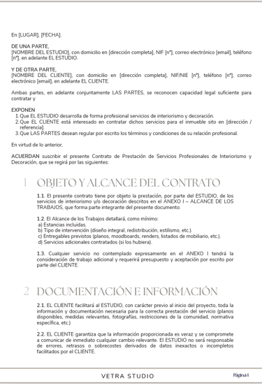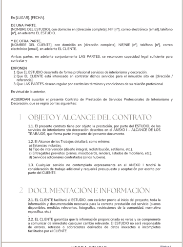 La plantilla está diseñada para interioristas y estudios que desean trabajar con orden, profesionalidad y tranquilidad.