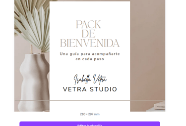 Edita textos, colores, tipografías, logotipo y estilo visual. Exporta en PDF y envía tu Pack de Bienvenida en minutos.