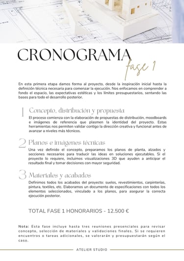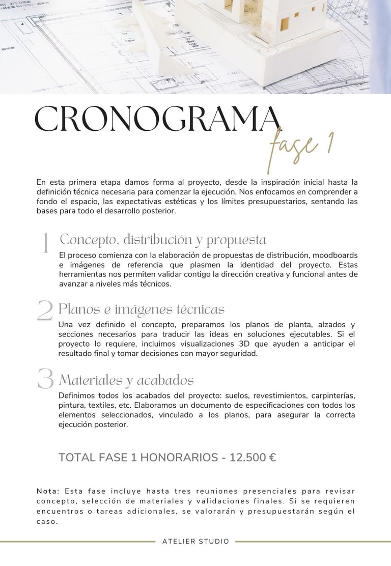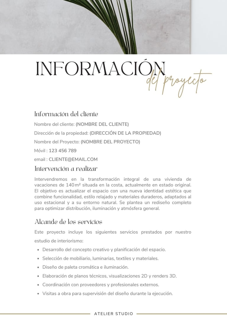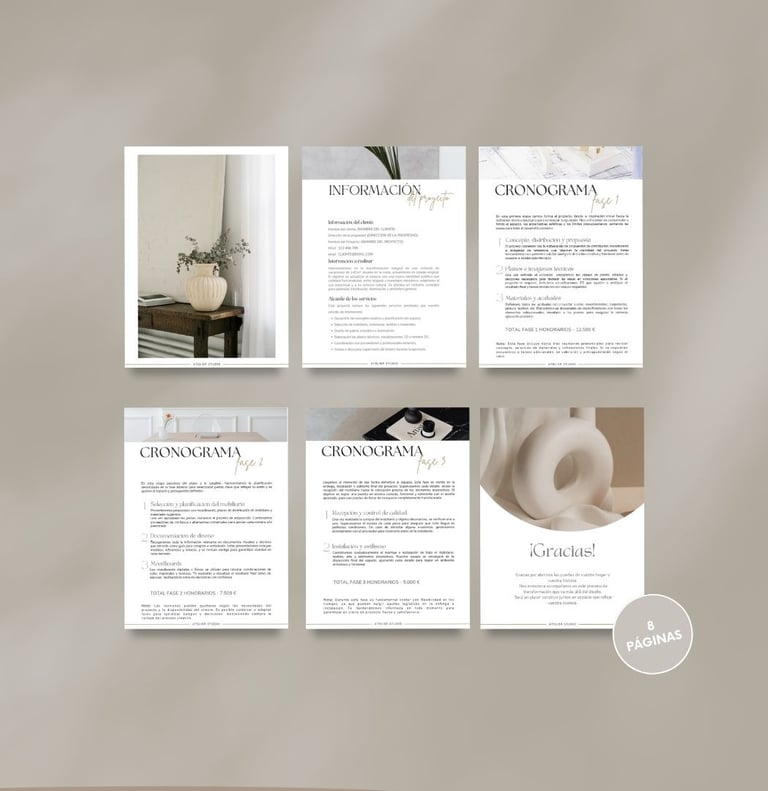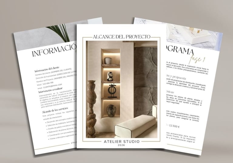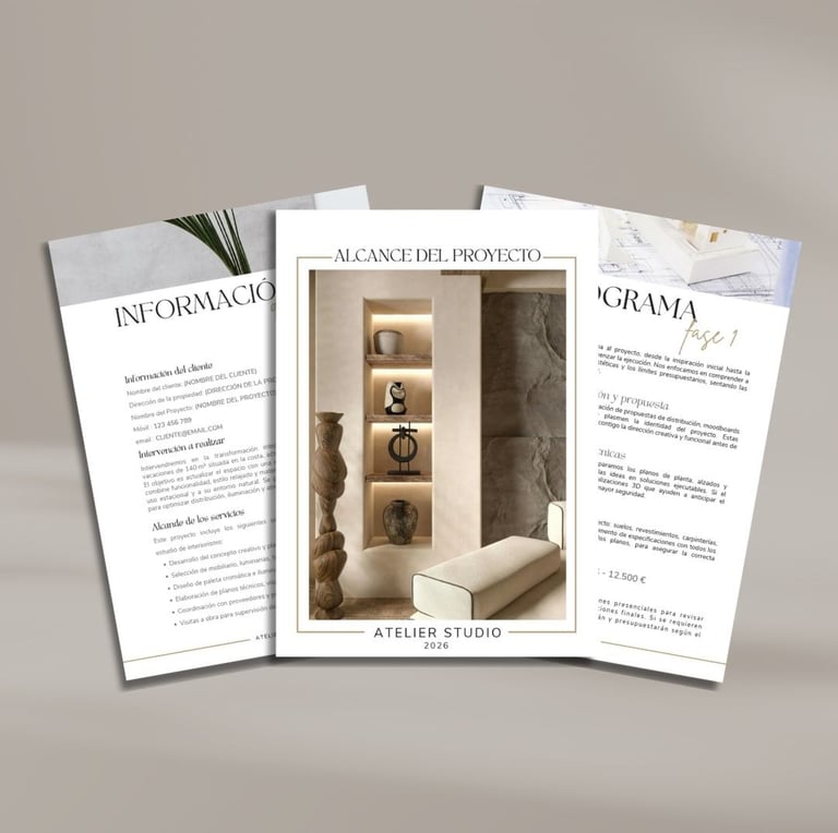 Perfecto para interioristas y estudios que quieren comunicar orden, transparencia y metodología desde el primer día