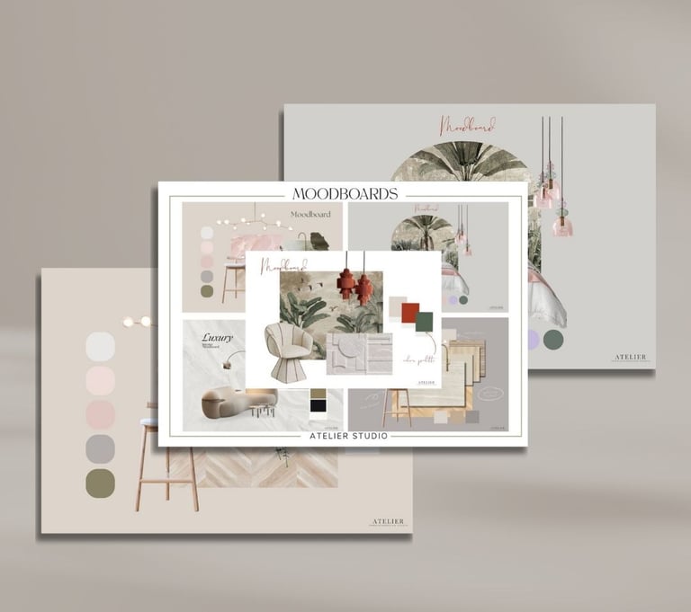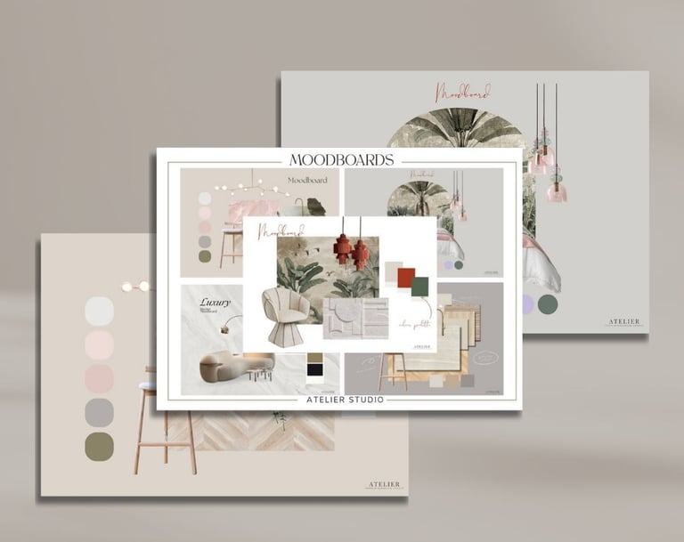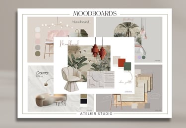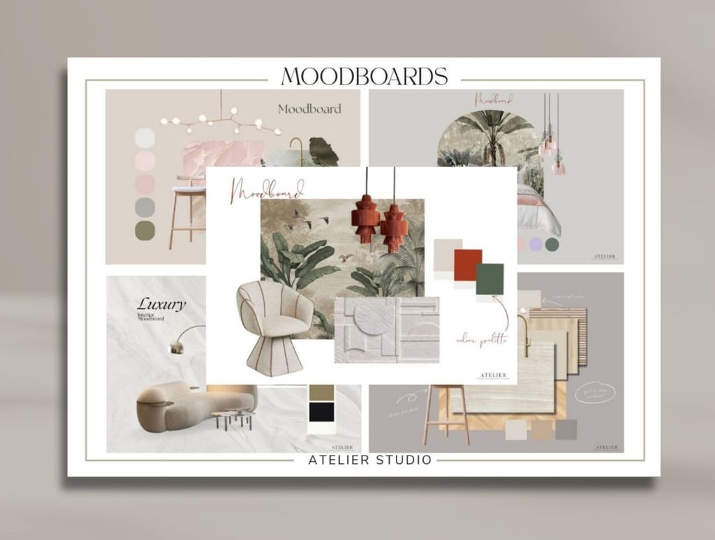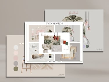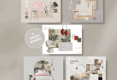 Un pack de 5 moodboards diseñados para interioristas y estudios que desean mostrar estilo, materiales y paletas de color con claridad y coherencia visual desde el primer contacto.