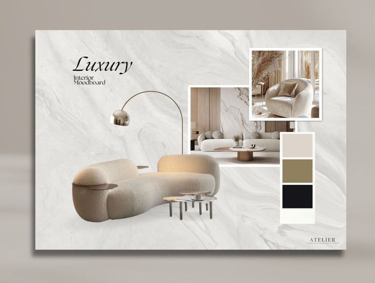 Este pack reúne cinco moodboards cuidadosamente diseñados para ayudarte a mostrar materiales, texturas, paletas cromáticas, mobiliario y estilo en un formato visual atractivo y fácil de entender por tus clientes.