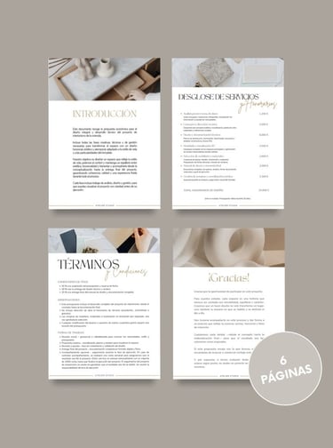 Incluye estructura editorial, textos orientativos y un diseño premium que puedes adaptar a tu branding en minutos.