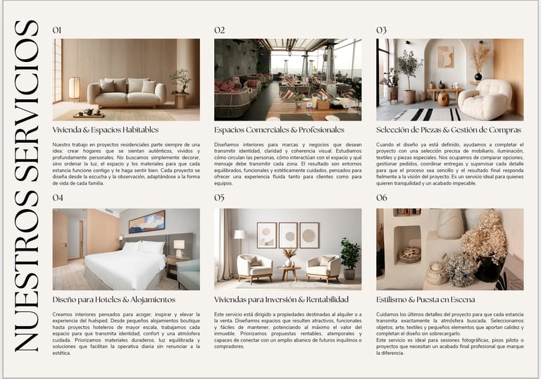 Ideal para interioristas, diseñadores, arquitectos y estudios que necesitan transmitir su propuesta visual con solidez y estética.